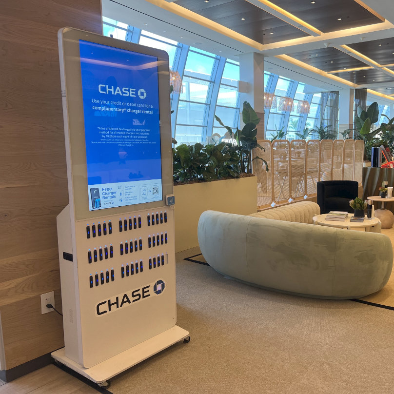 The chargeFUZE F45 brings maximum charging power to large‑scale spaces. This floor‑standing unit is built to engage guests, drive visibility, and keep crowds powered throughout their visit. Ideal for arenas, convention centers, campuses, and major hospitality venues.